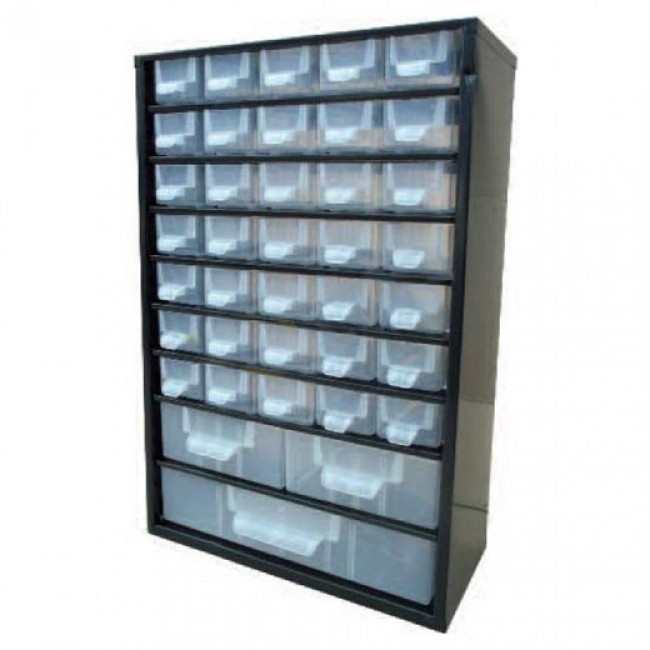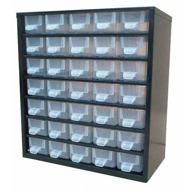 Ce casier en acier 35 tiroirs est particulièrement adapté au rangement de visserie, boulons, rondelles, petites pièces détachées, composants ou fournitures diverses.