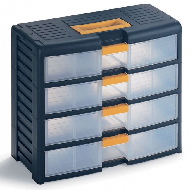 Ce bloc tiroirs en plastique est conçu pour le rangement ou le stockage des petites pièces.