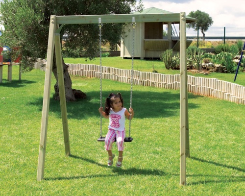 Balançoire en bois lamellaire de pin nordique, équipé d'un siège anti-choc plat en caoutchouc.