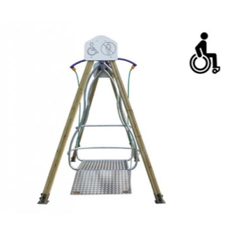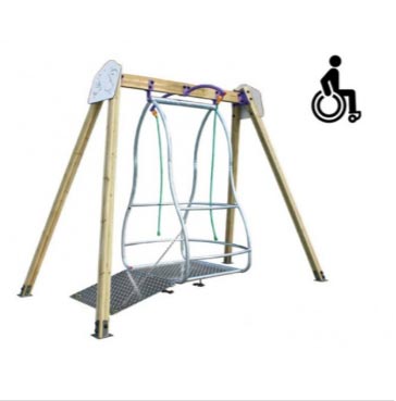 Cette balançoire est parfaitement adaptée aux fauteuils roulants.