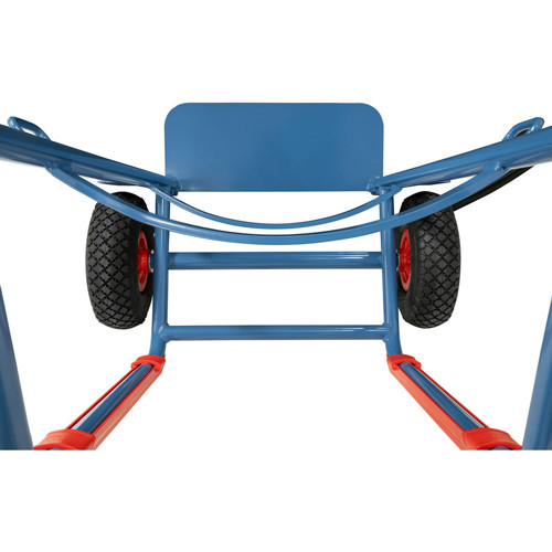 Votre diable arbore fièrement son revêtement époxy bleu RAL 5007 qui le protège contre corrosion, chocs et projections chimiques.