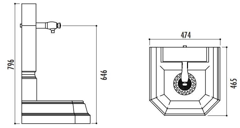 - Hauteur robinet : 646 mm