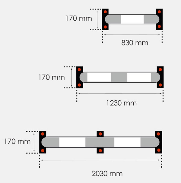 - Dimensions : 830 x 170 x 110 mm