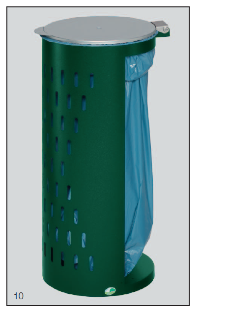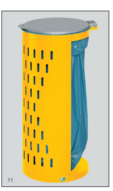 Équipée d‘un couvercle métallique, revêtu argent et un anneau métallique pour la fixation du sac poubelle.