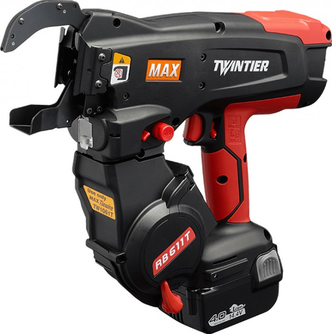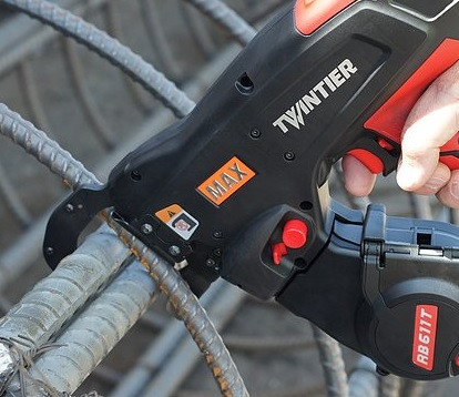 Cette ligatureuse de barres d'armature permet de faciliter les travaux d'attaches de treillis soudés, de fers à béton et d'incorporations en dalles.