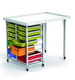 JUK 224 est un chariot mobile composé de bacs ; il est aussi utilisable comme table de travail.