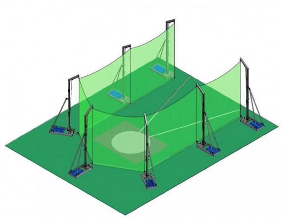 Cette cage disque à embases mobiles est conçue pour lancer du disque et du marteau.