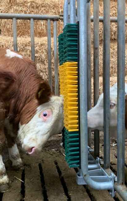 Grâce à leur faible rebond, les brosses pivotantes peuvent être utilisées sans danger dans des troupeaux mixtes de vaches, veaux ou chevaux.