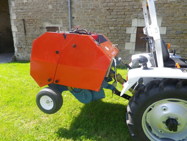 La mini presse à balles rondes est adaptée pour des tracteurs et microtracteurs à partir de 20 CV, elle réalise des balles rondes de 30 kg environ.