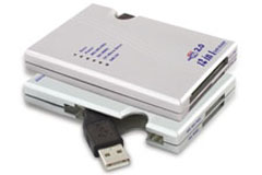 • Supporte : CompactFlash type I et II, SmartMedia, MMC, RS-MMC, Memory Stick, Memory Stick Pro, Memory Stick Duo, Microdrive, Secure Digital, mini Secure Digital et xD picture card. • Taux de transfert de données : jusqu’à 480 Mbps. • Compatibilité : Windows 98/SE/ME/2000/XP. • Connectique : USB 2.0.