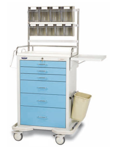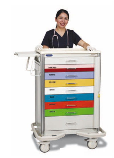 - roulette blocable, barre directionnelle du chariot, poignées (2) directionnelles, bâche pour couvrir votre chariot, concasseur silencieux mobile, porte-étiquettes, porte cathéter, organisateur avec couvercle, support de réservoir à oxygène, 3 compartiments à ajouter sur un côté, poubelle, corbeille, barre support de perfusions planche coulissante sur le côté, support planche pour arrêt cardiaque, boite à gant en plastic, support pour aspirateur chirurgical, étagère pivotante pour ordinateur, étagères, organisateur à petits compartiments, organisateur de tiroirs, extension du chariot (hauteur : 87.3 cm - largeur : 34.3 cm - profondeur : 45.7 cm).