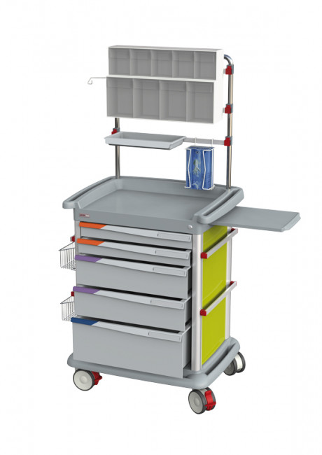 Ces chariots sont un support idéal pour le travail quotidien des soignants et participent à l’acheminement des DM et médicaments vers les patients.