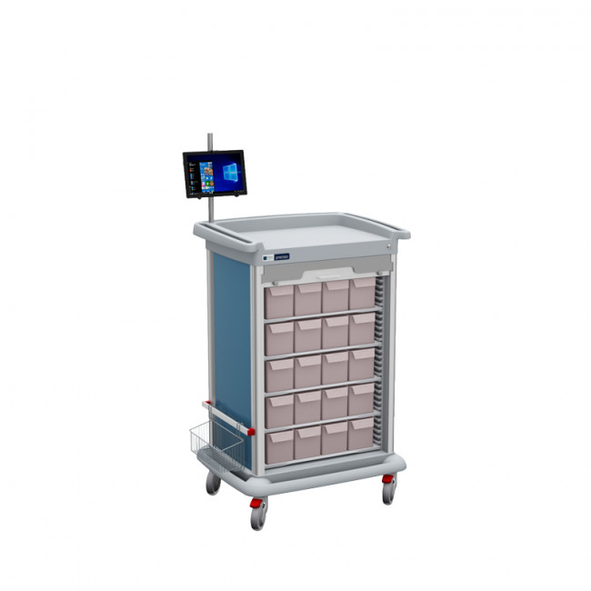 Les chariots multifonction PRECISO ont été développés pour la gestion du soin, la dispensation du médicament, la visite patient et le stockage et transport interne.