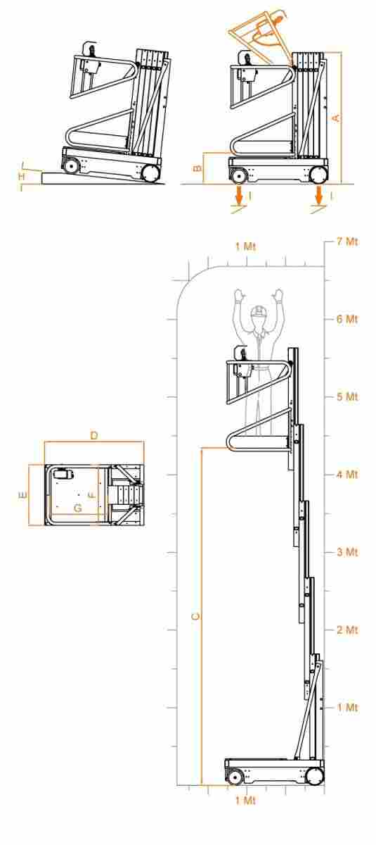 Hauteur max. du sol 1,95 m (Cet accessoire permet d'utiliser la machine sans permis)