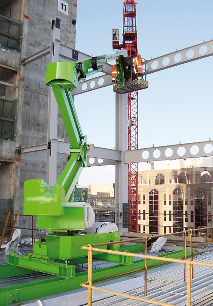 - Exceptionnellement légère, la plate-forme élévatrice sur traîneau fixe peut ainsi servir dès les premiers stades de construction de la structure en acier, avant la pose des dalles en béton.
