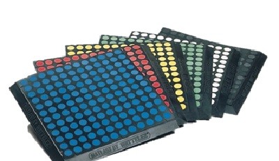 Ces pastilles proposées en différentes couleurs permettent d’harmoniser les tapis avec l’atelier, de repérer les postes par les couleurs ou un marquage