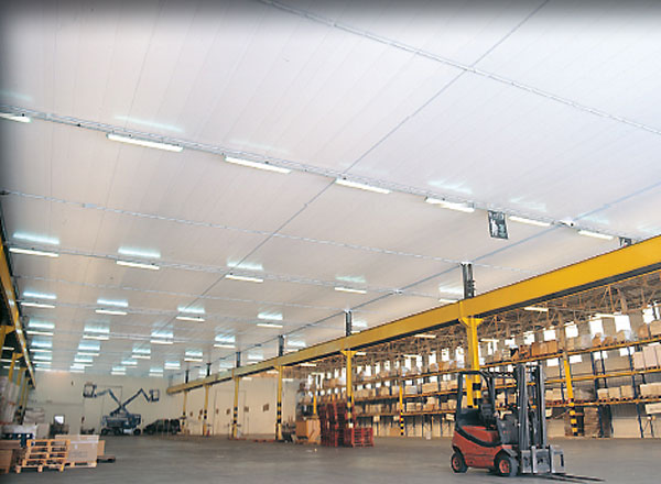 Nous voulons réaliser un plafond en bache isolante sur un batiment de stockage