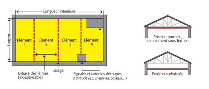 19/01/2024Je vais réhabilité un bâtiment industriel pour en faire un atelier. J"ai besoin d"isoler murs et plafonds. Le plafond est constitué de 3 travées de 11x22m soit 730 m². La configuration est sensiblement identique à celle du croquis présenté sur la page de présentation produit. Je vais réaliser les opérations moi-même, aussi j"aurais besoin de conseil ainsi que de la fourniture complète.