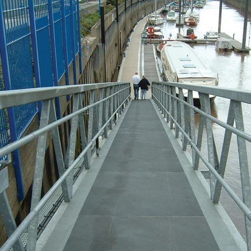 Rampes, passages pour piétons, ponts, sols d'ateliers