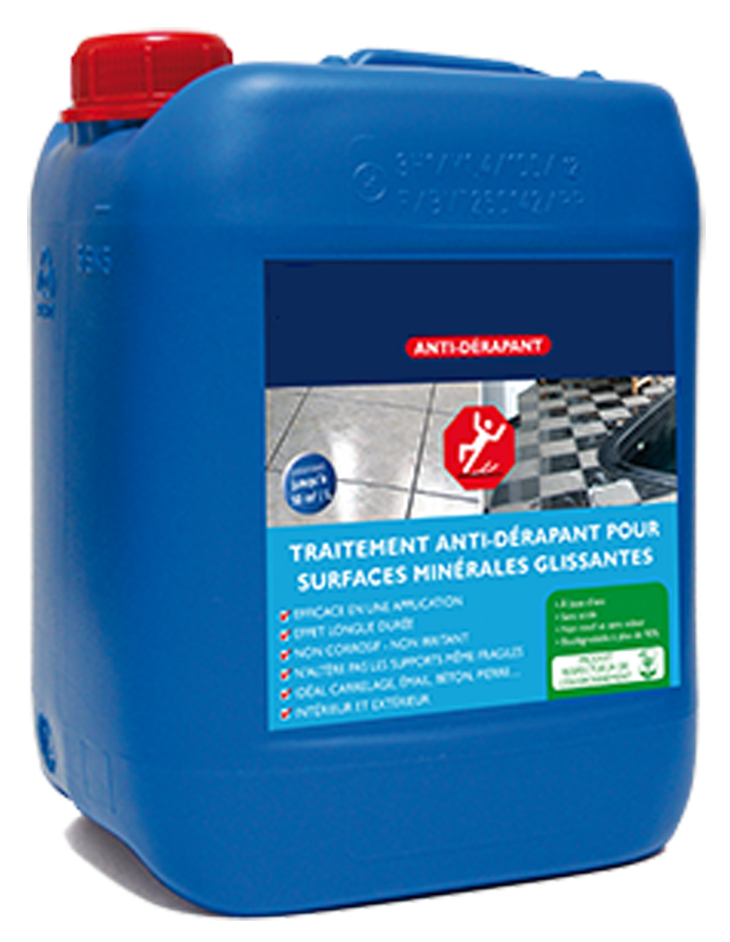 L’Anti-dérapant est un produit écologique, sans COV, avec un solvant à base d’eau contrairement aux produits à base d’acide fluorhydrique.