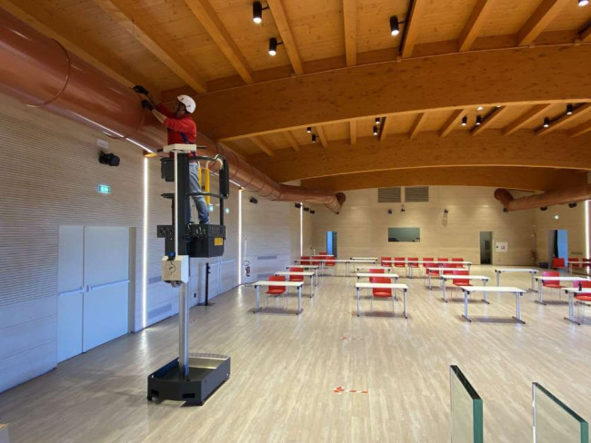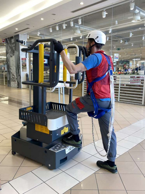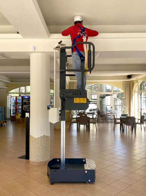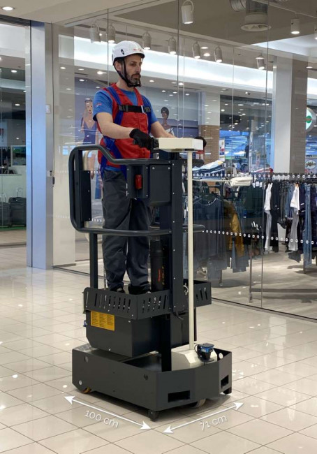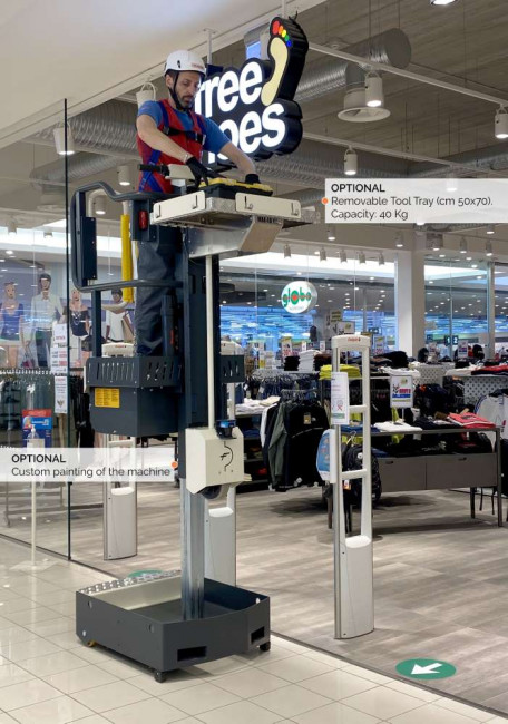 Notre nacelle compacte ELEVAH 40 Move est idéale pour l'entretien et le nettoyage des bâtiments publics, des bureaux et des immeubles. Grâce à sa taille réduite, elle offre une grande maniabilité, ce qui la rend parfaite pour les travaux de maintenance dans les centres commerciaux, ainsi que pour l'installation d'équipements tels que les systèmes électriques ou les climatiseurs. Elle constitue une solution pratique pour accéder aux zones difficiles, comme les salles serveurs, les cliniques, les universités, les hôtels, et bien d'autres établissements.