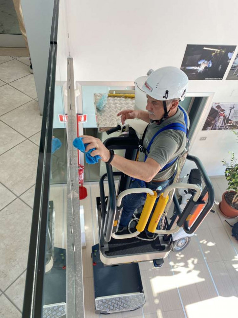 Notre nacelle compacte ELEVAH 40 Move est idéale pour l'entretien et le nettoyage des bâtiments publics, des bureaux et des immeubles. Grâce à sa taille réduite, e