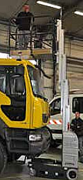 Nacelle automotrice compacte( déplacement électrique aussi)largeur de passage 80 cm. Hauteur de travail env 5 à 6m et une charge de 100 kg c"est largement suffisant.