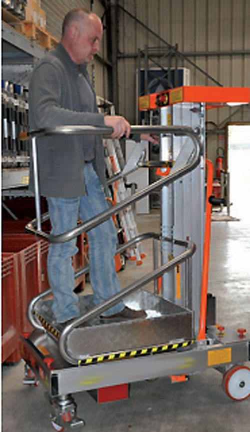 tablette a 4.5m,= nacelle élévatrice manuelle ht de plancher a 4085mm