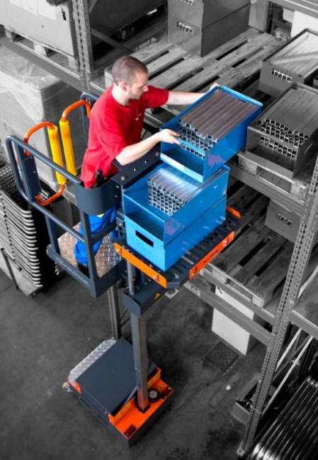 Cette nacelle automotrice de picking 5 m permet de travailler en toute sécurité, même dans les endroits les plus étroits et difficiles à atteindre.