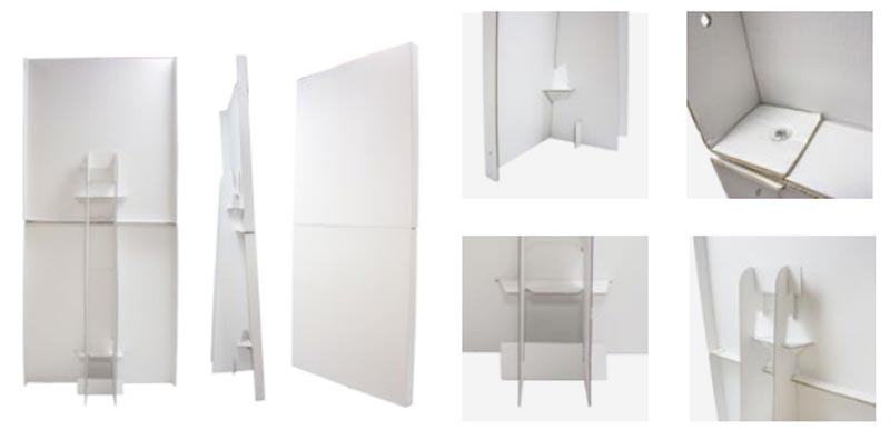 Fabriqué en carton, ce support publicitaire accepte des bâches publicitaires en forme verticale.