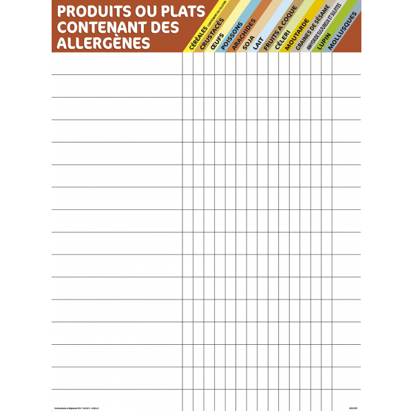 Ce panneau d’information sur les allergènes est conçu pour espaces de restauration.