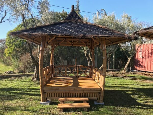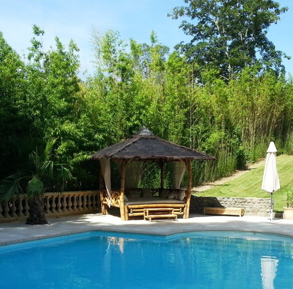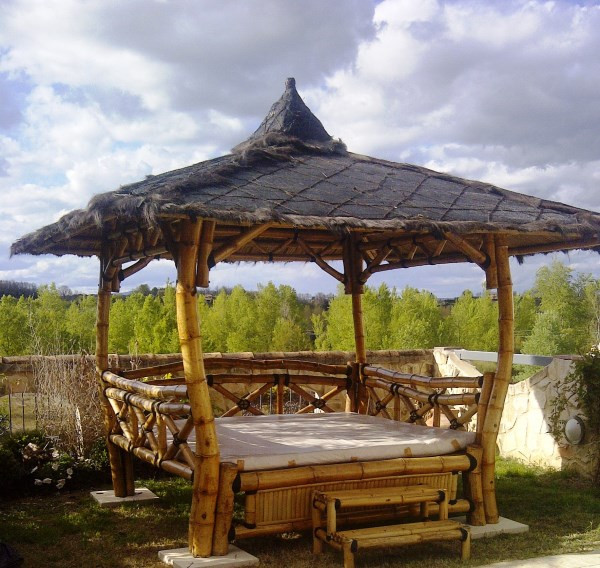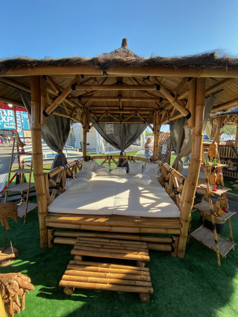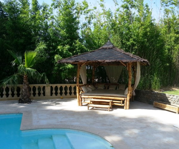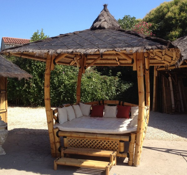Ce lit extérieur en bambou permet de bénéficier d'une sieste dans le jardin ou à côté de la piscine.