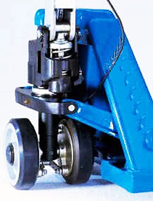 Le châssis du transpalette manuel est équipé de série de roues directionnelles en caoutchouc et de galets de fourches version tandem en polyurethane.