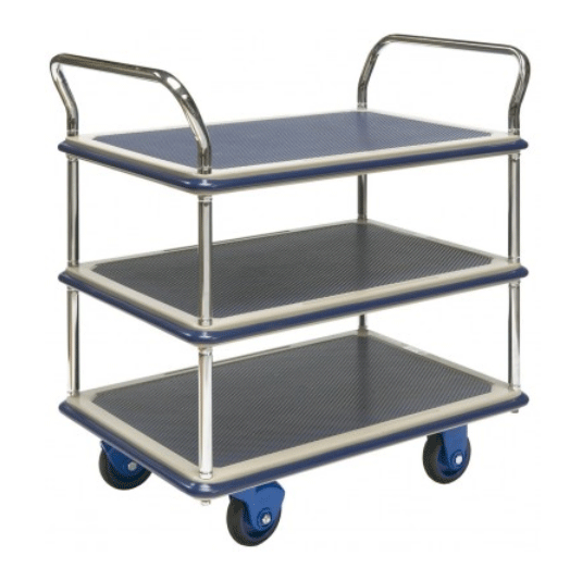 chariot à 2 ou 3 plateaux est conçu spécialement pour une utilisation à l’intérieur dans les bureaux et ateliers.