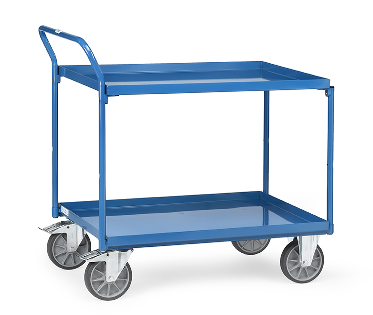 Les deux plateaux en tôle acier étanche intègrent un rebord périphérique de 40 mm qui sécurise le transport de pièces, outils ou contenants divers.