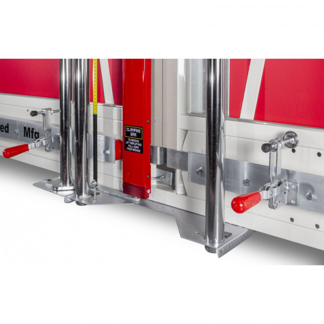 - Jeu de pinces de serrage inférieures gauche et droite pour le serrage d'un ou de plusieurs panneaux pendant la découpe ou le sciage