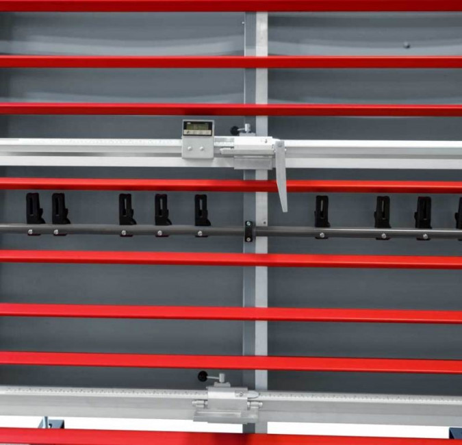 La scie à panneaux est équipée de deux butées mécaniques pour le support du panneau inférieur et central, assurant une stabilité pendant la découpe maximale.