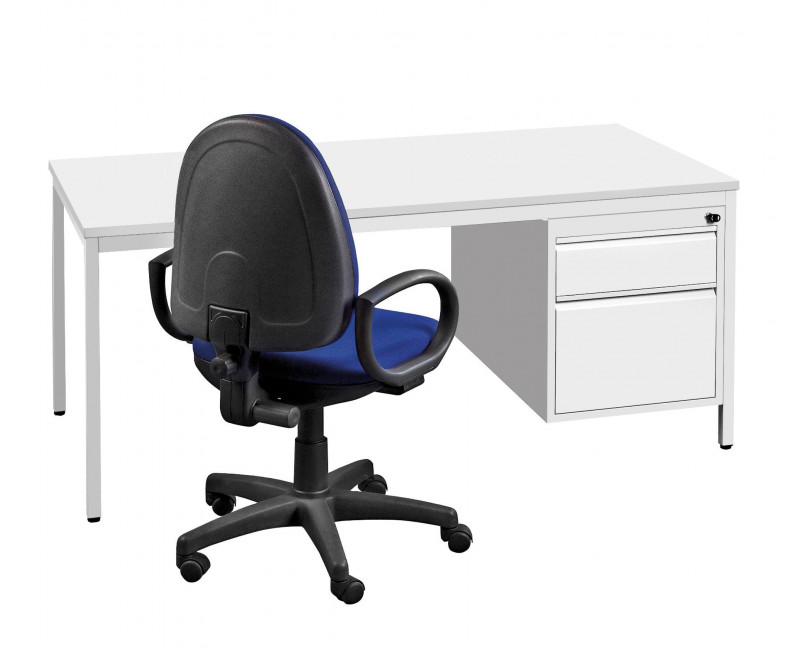 Le bureau dispose d’un plateau mélaminé d’épaisseur 18 mm, chants PVC et le caisson est fabriqué en tôle d’épaisseur 7/10e.