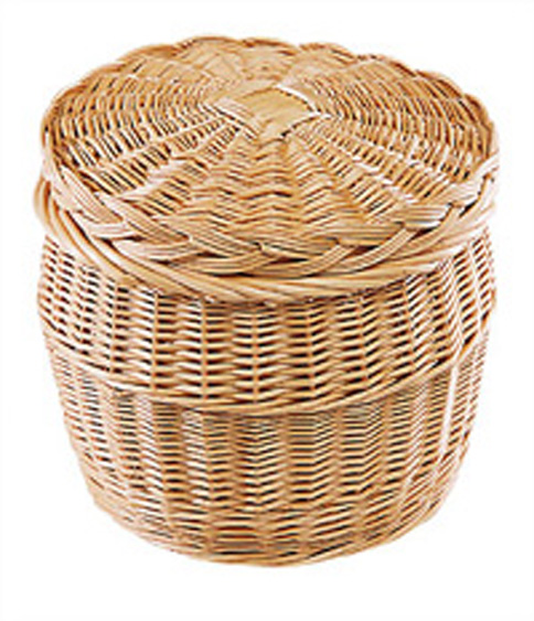 - Pouf à linge en osier blanc décortiqué et sans teinture.