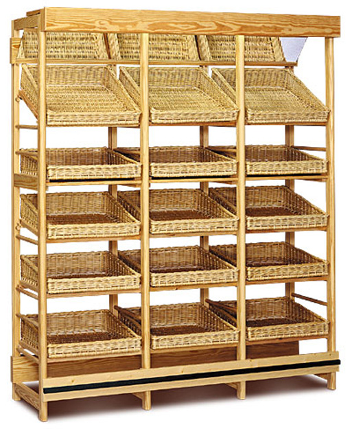 Meuble en osier destiné aux boulangerie pour exposer le pain.
