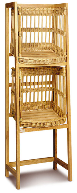 Présentoir à pain debout en osier blanc.
