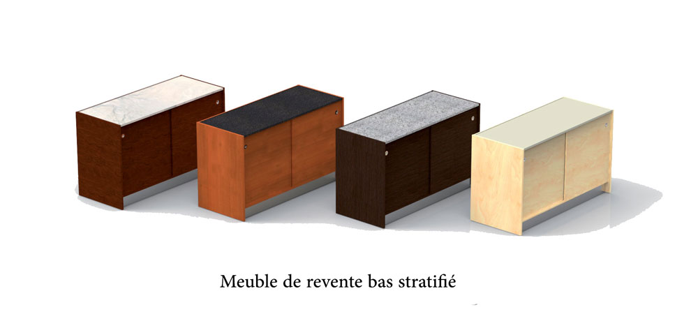 Veuillez préciser la couleur lors de la commande (Consulter la fiche PDF ci dessous).- Meuble de revente bas stratifié.