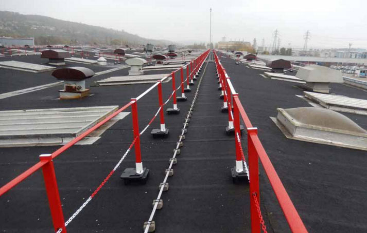Pour restreindre ou délimiter un espace de travail temporaire ou durable, nous mettons à votre disposition notre balisage de toiture rouge et blanc.