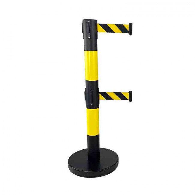 - Poteau lesté en acier avec double sangle rétractable