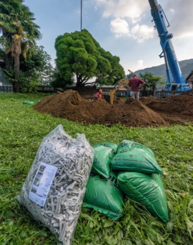 LITE-STRIPS, mélangé à la terre jouera son rôle de rétenteur d’eau en stockant l’eau de pluie ou en provenance d’arrosage aérien. Contribue à diminuer les fréquences d’arrosage.