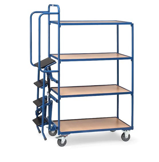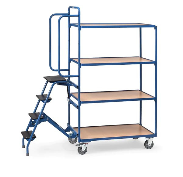 Fiche technique - Chariot préparateur de commandes avec marchepied - 4 plateaux, version haute