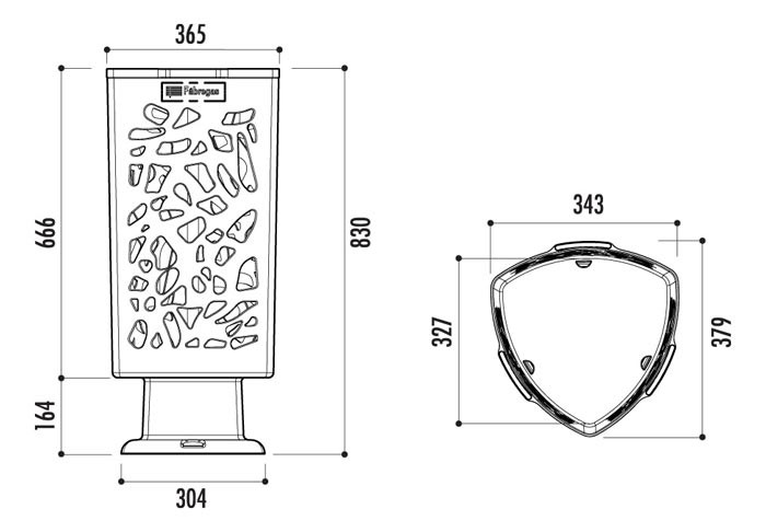 Elle mesure 830 mm de haut, avec une base de 304 mm de large et une ouverture triangulaire de 343 mm sur 379 mm.