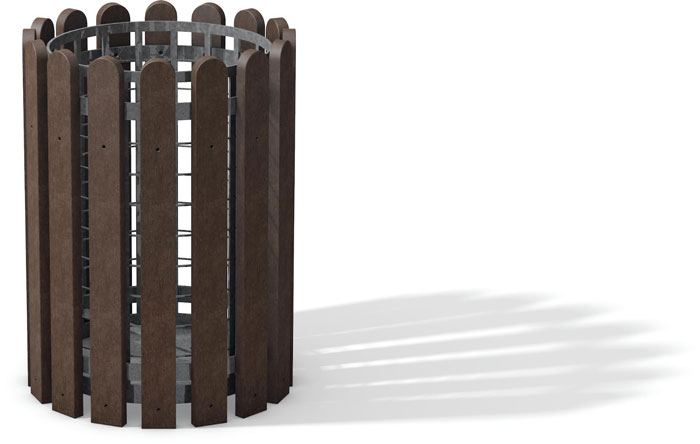| Réf. TC :274925209 | Corbeille de ville en plastique recyclé | 70 | 66 | Ø 48 | Marron | -