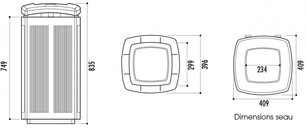 - Dimensions : H. 835 x l. 409 mm