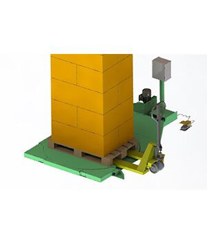 Pour utiliser la banderoleuse, commencez par placer la palette sur le plateau tournant.
